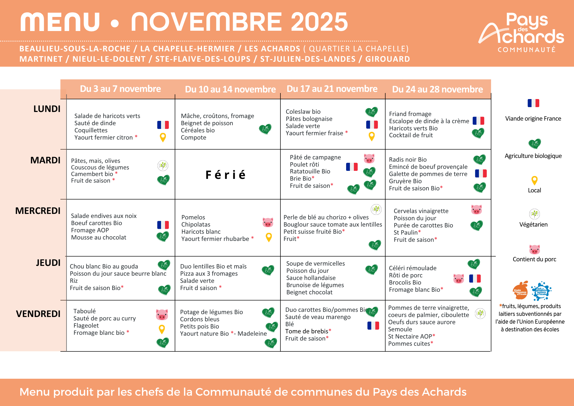 Saint-Julien-des-Landes - Petite Enfance - Education - Jeunesse - Le restaurant scolaire - Menus