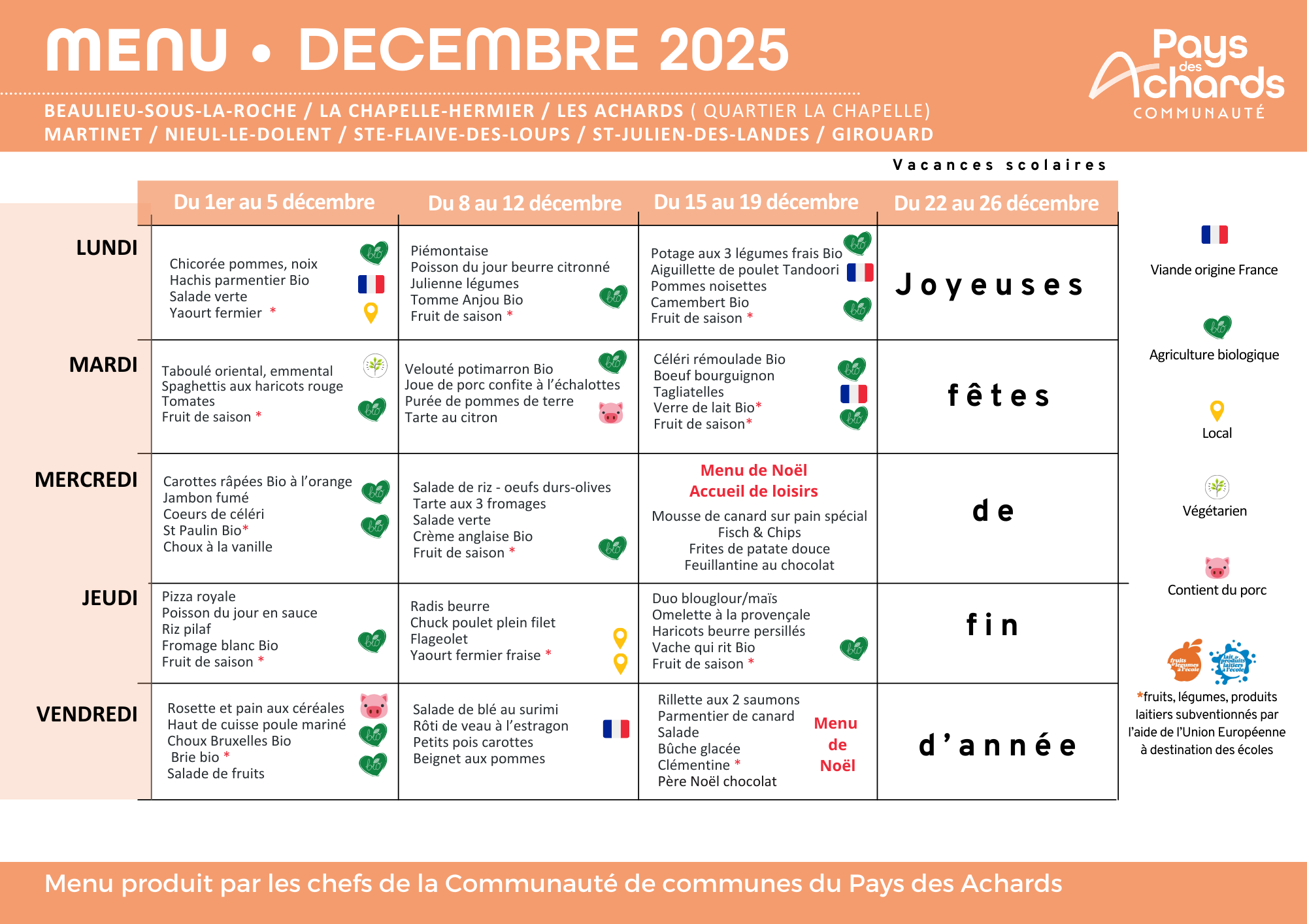 Saint-Julien-des-Landes - Petite Enfance - Education - Jeunesse - Le restaurant scolaire - Menus