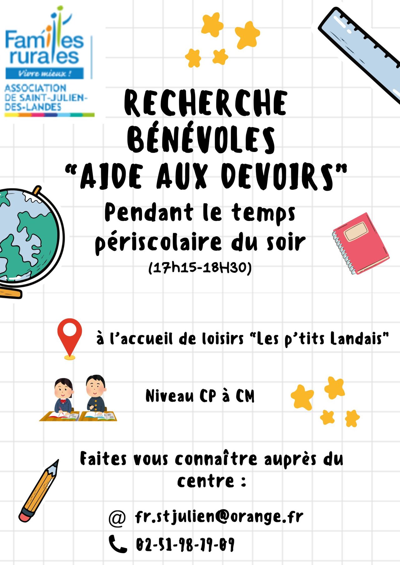 Vous avez un peu de temps à offrir et le cœur à aider ? Nous recherchons des bénévoles pour accompagner les enfants dans leurs devoirs. 📝✨